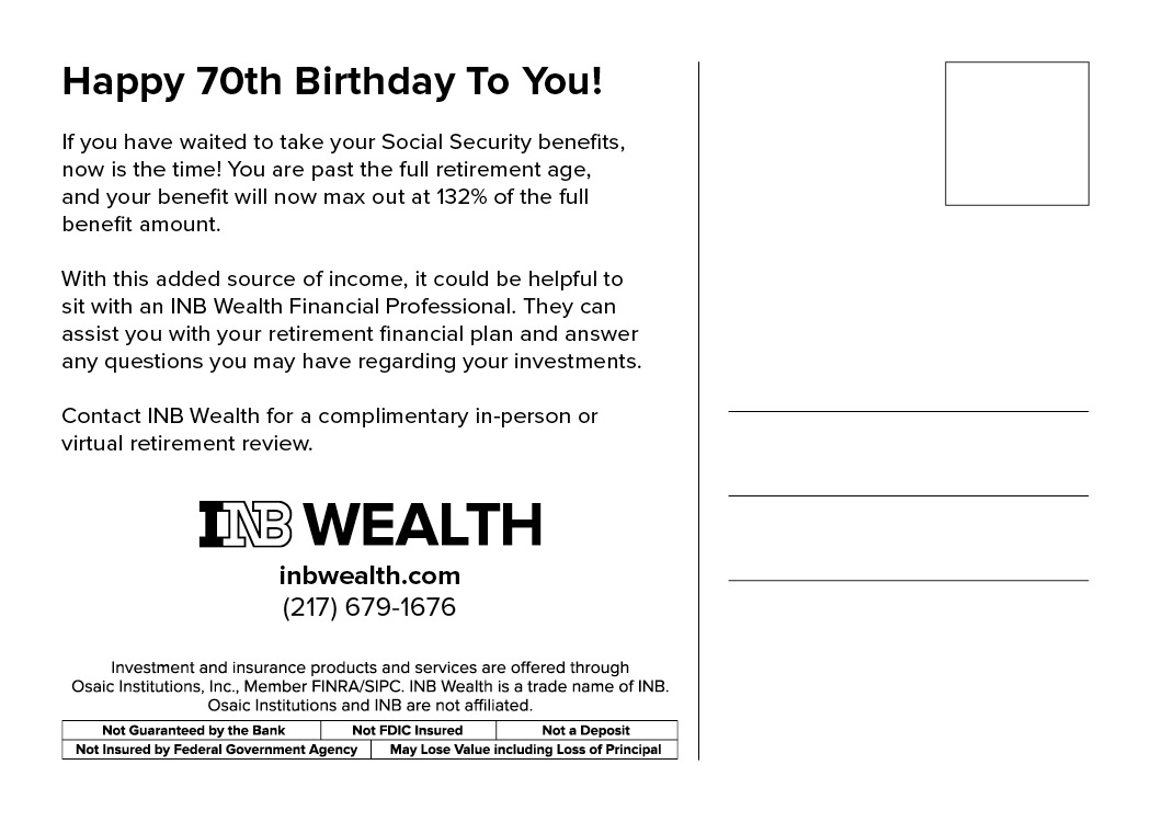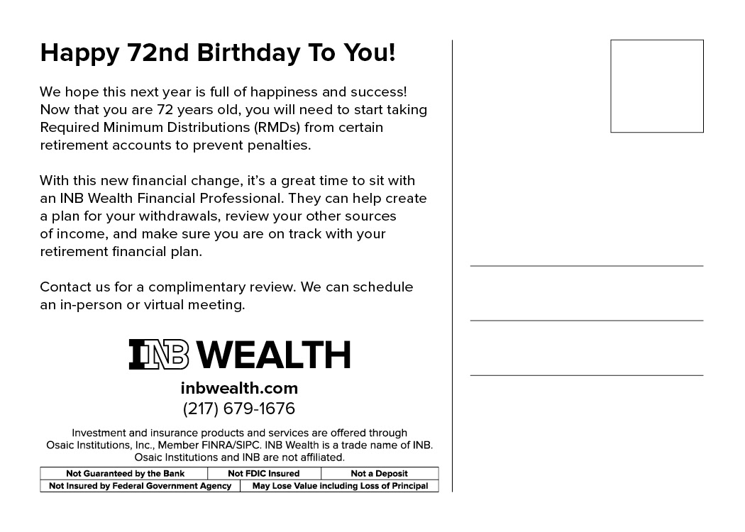 INB Wealth Birthday postcards